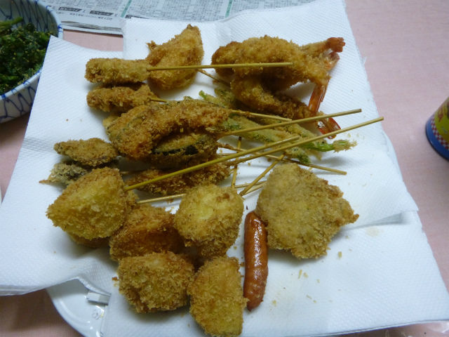 今日は、ワイフの母が串カツを揚げてくれたので、実家で夕食。いやはや、世の中には串カツ専用のタレなんて売られてるんスね。好物であった椎茸を尽くはじき飛ばしつつ、腹12分目まで食べた。