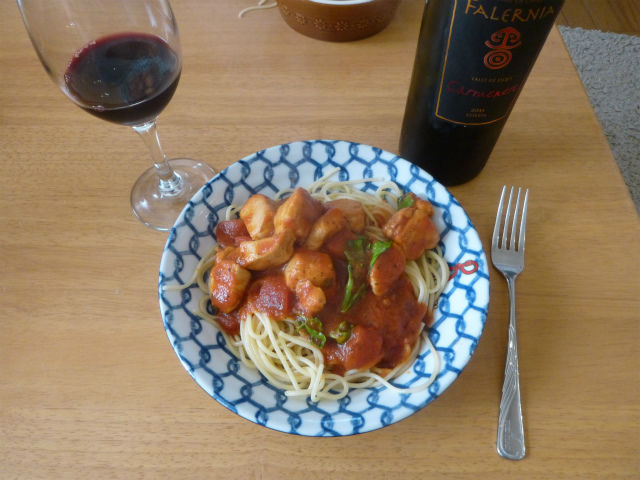 昼にワイフが生ハムのパスタを作ると言ったのだが、ガッツリしたのを食べたかったので、タッチ交代で鶏肉のトマトソースを作った。途中、ドバッとシェリー酢が入ってしまい、絶望しながら味を修正。何とかかんとか、美味しくなった。