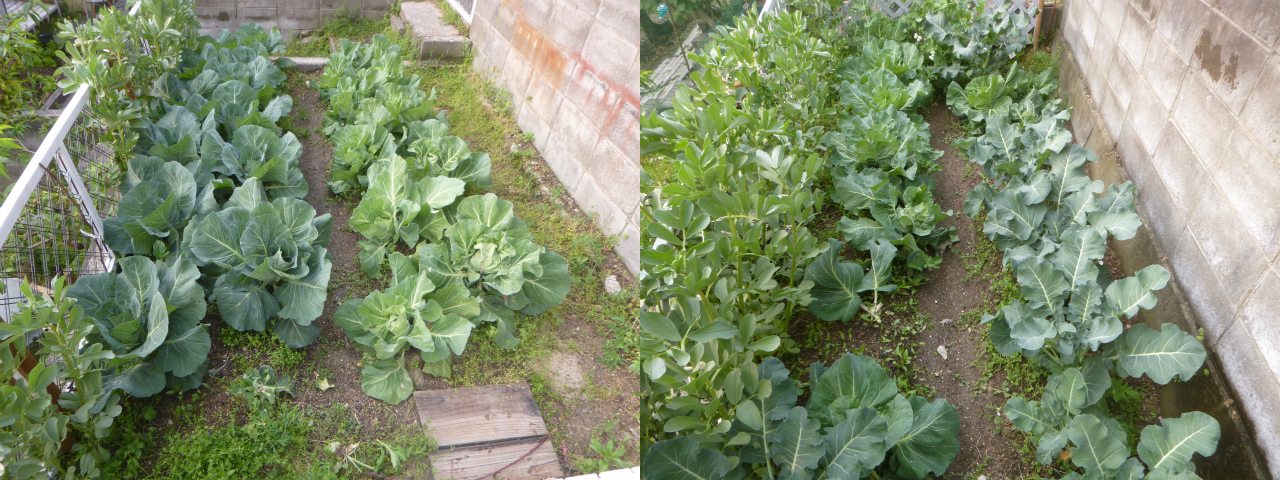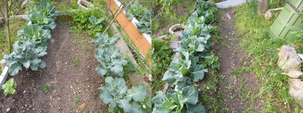 「キャベツとブロッコリーのメインゾーン」今年はキャベツとブロッコリーを沢山植えてみた。