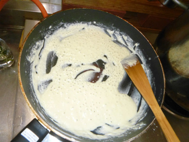ベシャメルソースを溶かし込む際、味噌こし器が活躍。