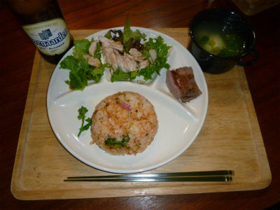 本日はダブルスプリットトレーニング。午前は、トラックで100m。夕方、娘さんの習い事送迎ついでの20分間集中トレーニング。と言っても、調整なのでフロアから持ち上げるクリーンを60kgからのディセンディングセットで4〜5セット行っただけ。昼飯はこんな感じ。4月26日(土)