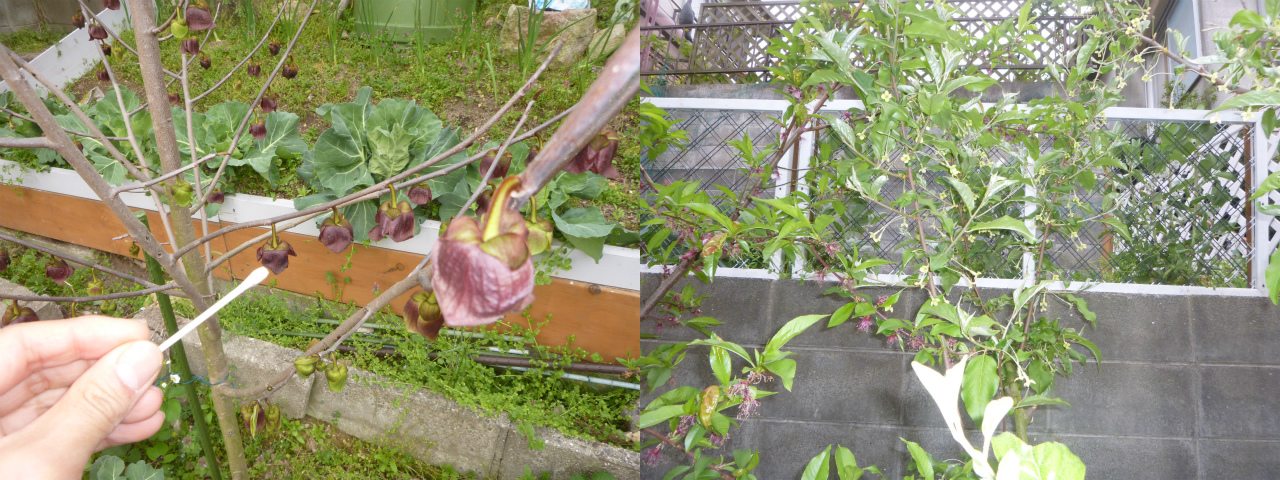 本日のノルマは、森のカスタードと呼ばれるポポーの人工授粉。