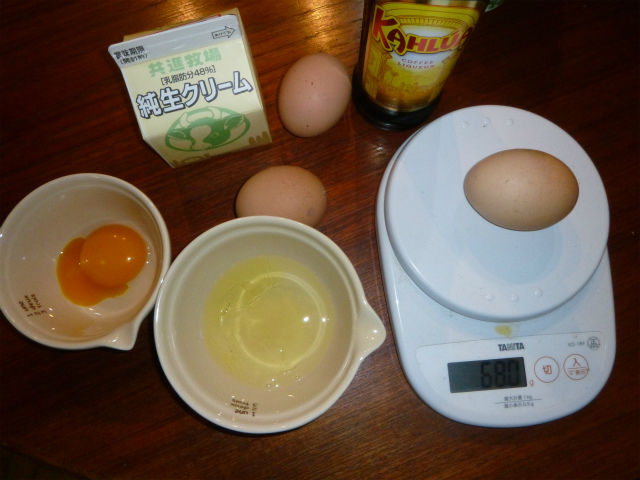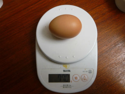 1歳になったニワトリ達の中には、70gを超える2Lや3Lサイズの卵を産む個体が出てきた。卵の大きさに関わらず、黄身の大きさは一定なんだよね〜、これ豆ね〜、と言いつつ卵を割ると黄身までデカ!