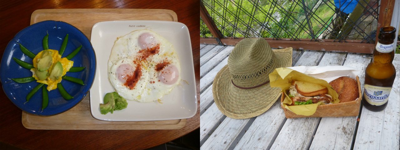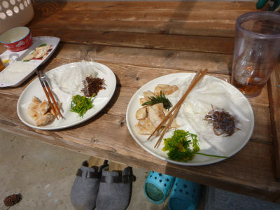 で、色々と忙しいので、本日の昼食は縁台で外メシ。ワンプレートのシンプルなご飯。娘さんが自分の花壇が欲しいと言うので、セルフで開墾させてみたら中々の出来。しかし、石で囲っただけなので、それじゃあニワトリに入られてアラされるぜ?