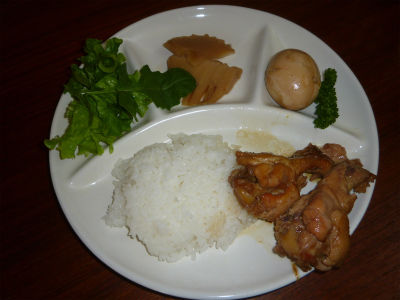 メニューは焼きそば。ニワトリは、麺類をミミズと勘違いして大興奮する。