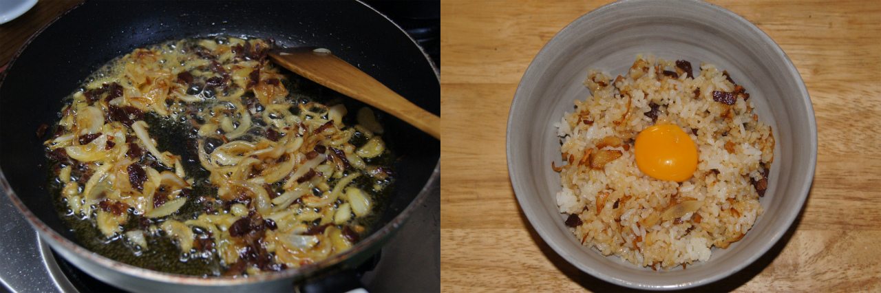 夜。娘さんとワイフは、ダンスの特訓へ行っており、晩飯にどうしてもカルボナーラが食べたくなったが、さりとて、沢山の湯を沸かしてパスタを茹でるのも面倒臭いので、ご飯を使用してみたところ、かなり美味しかった。結局、自慢したくて、帰宅したワイフにも作った。