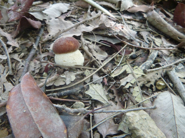 近所のトレッキングコースへ行ってきた。昼間、歩きながら樹液を出す樹の場所を記憶しておくの図(夜にクワガタが来る)。カペリートにそっくりのキノコがあった。