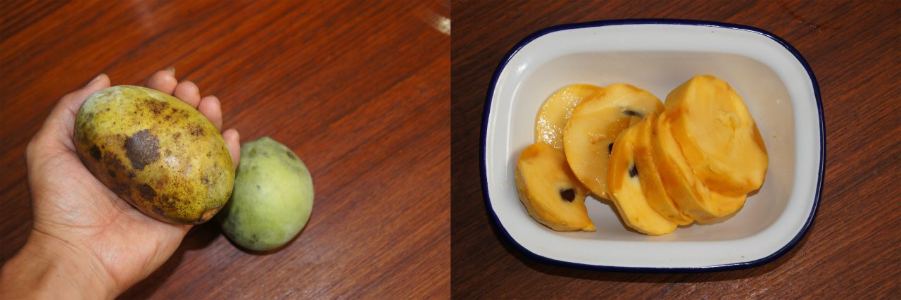 ポポーの巨大種「NC-1」が完熟落下した。デカイ種類は大抵大味と相場が決まっているが、大変に美味しい。マンゴーとドリアンを混ぜたような感じ。耐陰性、耐寒性高く、果樹管理なしで収穫可能なのでオススメ(要受粉木)。