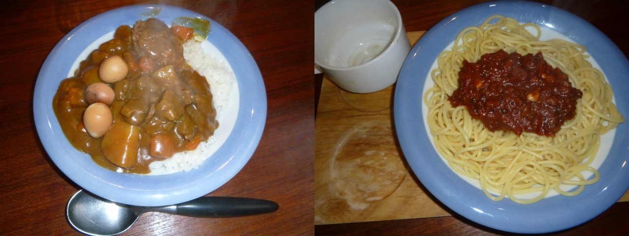 で、昼食は昨日のカレーにウズラの燻玉をトッピングしたもの。そして、夜は一昨日のミートソース。どちらも大量に作ったので、我家はあと10日は戦える!