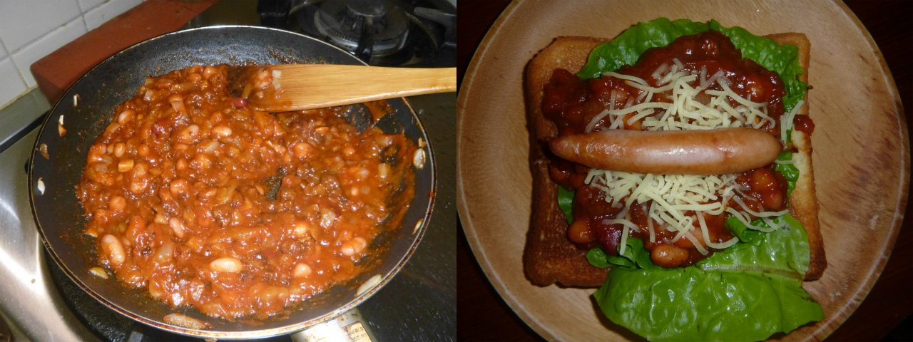 朝起きて、無性にフレッシュネスバーガーのチリドックが食べたくなった。そこに天啓を受けたが如く閃き、まだまだ残っているミートソースの一部にミックスビーンズを放り込んでカイエンペッパーをドバドバ。チリソースを作って、チリドックを再現。想像以上に美味しく、自分でベタ褒め。
