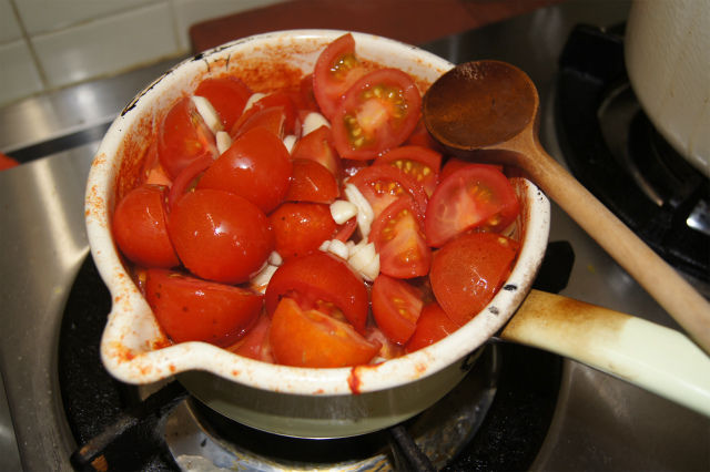 今日もトマトソース作りに精を出す。もう、単なるルーティンワークなので、丁寧さもこだわりもゼロ。