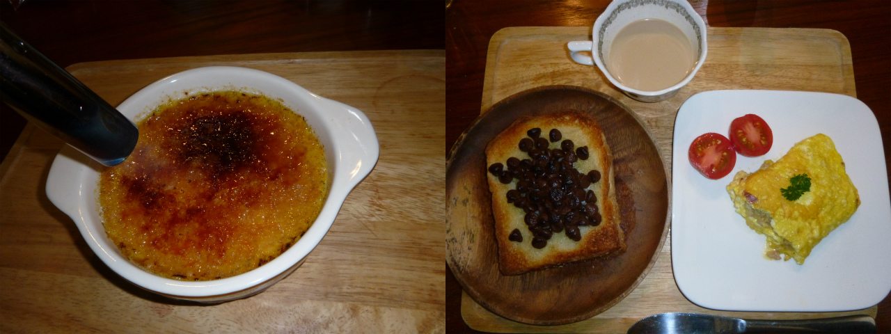 生クリームがヤバイくらい消費期限を過ぎていたので、朝からジャンボクレームブリュレを焼いた。その副産物として大量に卵白が発生するが、ワイフがミンチを使ってオムレツを作ってくれたの図。