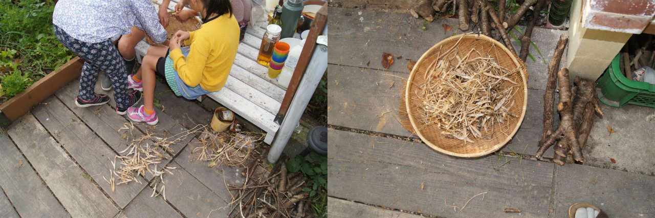 薪を熾すには、焚き付ける為の小枝とそれを熾す着火剤が必要となる。庭のアチコチに散在する小豆を収穫させ、豆とさやを分けさせる。その鞘こそが最高の着火剤となるのだ。そして、自動的に小豆が一瓶溜まるので、これWIN×WIN。