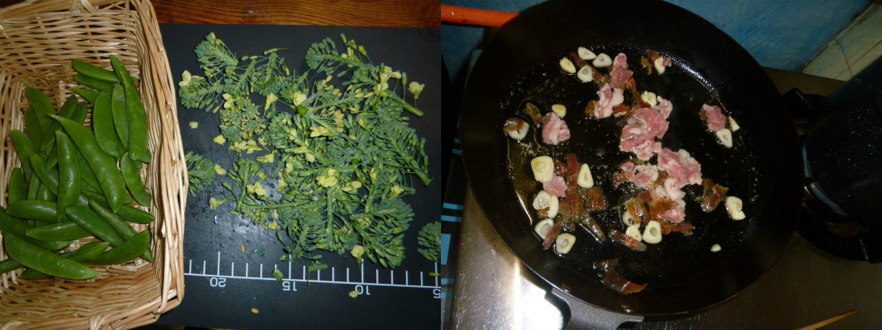 と言う訳で、春野菜のペペロンチーノを作る。