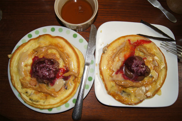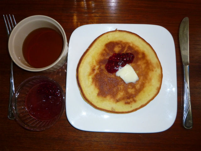 小野市の小麦粉で作ったホットケーキがブーム。邪道ではあるが、ヌテラにラズベリージャムを加えて乗せると美味しい。そして、メープルシロップは、直接かけずにワカレで食べると、甘さが強調されてこれまた旨い。まぁ、メープルは、あんまり食べへん方がエエけどね。