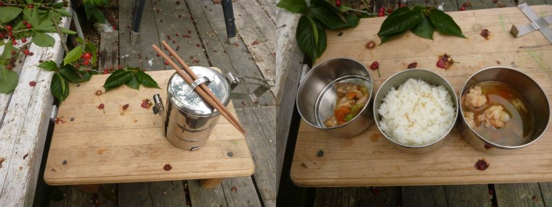 娘さんと同じ内容のお弁当を用意してもらっていたので、庭飯。