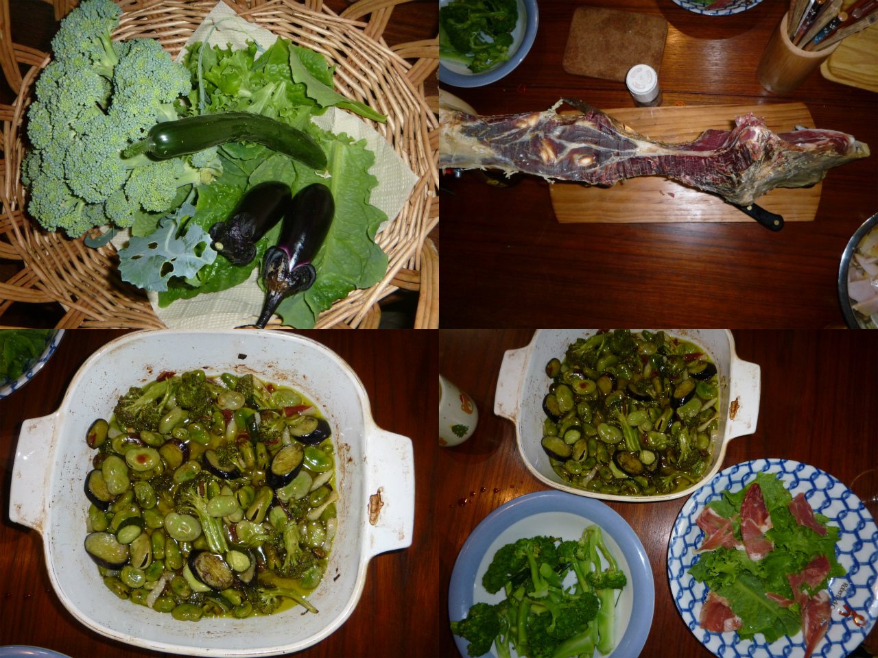 固くなったハモンセラーノを削いで、今日も野菜タップリ肉チョットの晩餐。