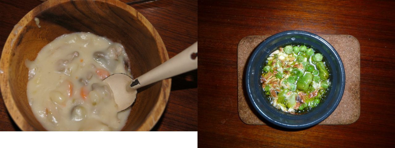 と言う訳で、今日の昼も夜もホワイトシチュー。そら豆やエンドウを試しにアヒージョにしてみたら、すこぶる美味しかった。