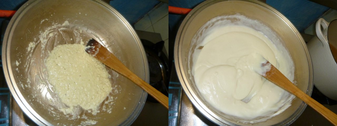 明日の給食はシチューなので、小麦粉をバターで炒めて、ベシャメルソースを仕込む。で、食材的には無理に買わず、庭にある野菜を放り込む。