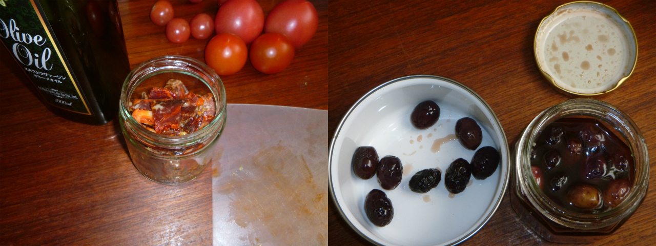 万能な調味料となる西洋の鰹、スペインソーセージ「チョリソー」が残り僅かとなったので、切り刻んでオリーブ漬けに。昨年収穫して塩漬けにしたオリーブ「ミッション」が食べ頃。