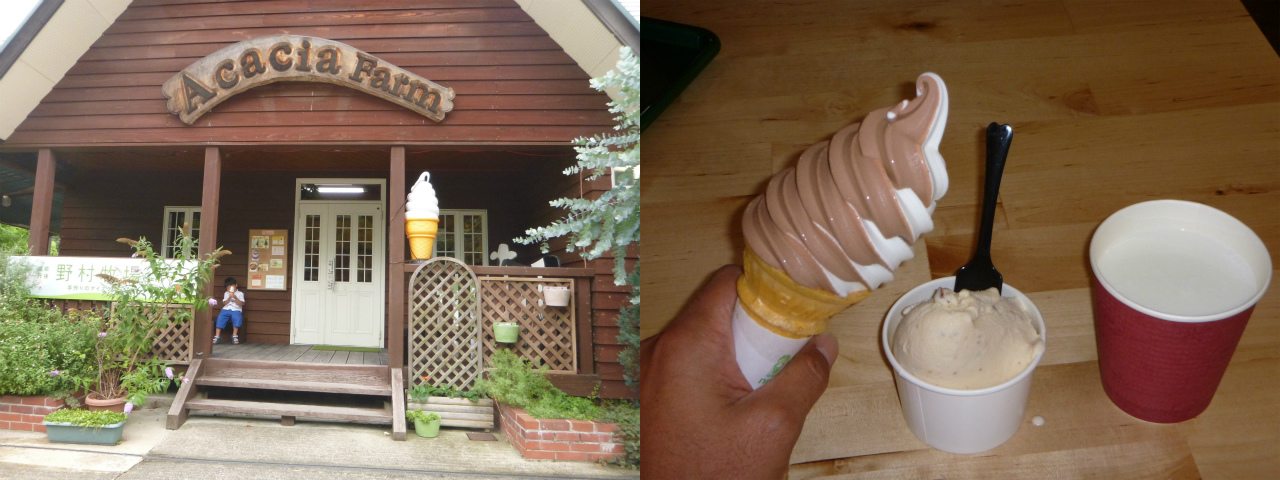 我々を投下したワイフ一行は、京丹後観光。まずはアカシアファームでソフトクリームを食べ、稲葉邸などを見学。
