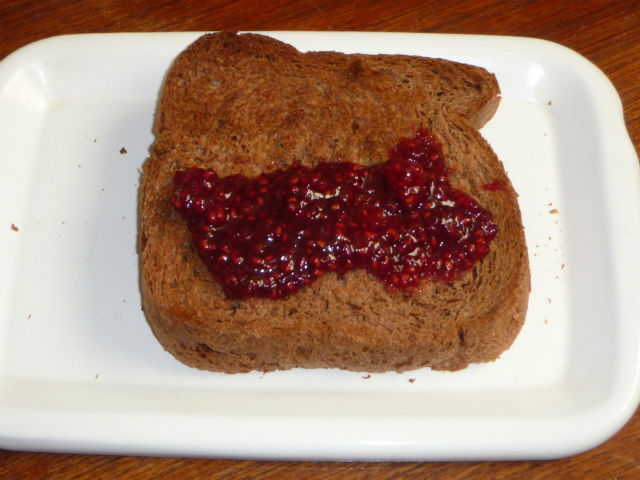 パンの発酵が上手くいかないとワイフが嘆いていたので、イースト菌が古いからじゃないの奥さんと言い放った冗談が真となった。新たに購入したイースト菌だと、膨らむようになったので、ワイフがチョコパンを焼いた。チョコと相性が良いラズベリージャムを塗って食す。
