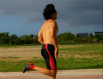 娘さんはローラーブレードの練習、息子はんは自転車の練習、お父さんは100mの練習。意見がバラバラなので、今日は箕面温泉スパガーデン・・・じゃなくって、トラックのある河川敷へ。わりかし、良いハムとケツ。7月28日(火)