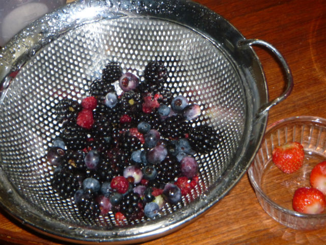 イチゴやラズベリーなど、適当に採って来て挟む。