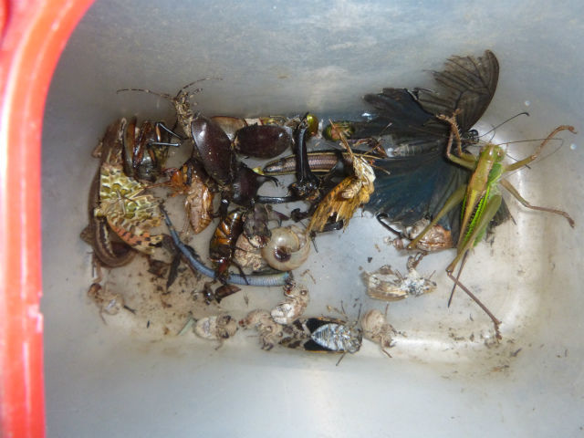 珍しい虫が採れるか採れないかの運試しと鶏のタンパク源集めなので、内容はなりふり構わず。