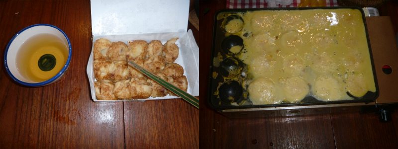 実家に長崎から伯母が来ており、ワイフ達は明石焼きを食べに連れて行っていた。お土産の明石焼きを食べたが、ふにゃふにゃだったので、晩に自分で明石焼きを作った。11月25日(水)〜11月27日(金)