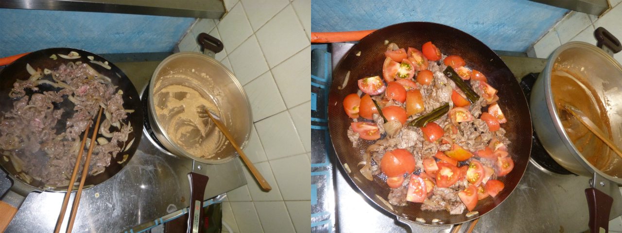 明日の給食はハヤシライス。作り方のマニュアルはなく、いつも自己流。小麦を焦がしてブラウンソースを作りつつ、お安いオージービーフの切り落としを炒めてからトマトで煮込む。