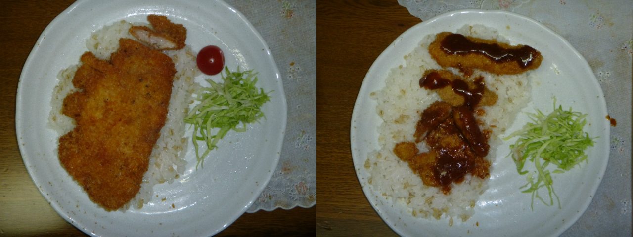 今晩は地区の来年度役員を決めるくじ引きの日で、その後に打ち合わせもあるので、午前様を覚悟。実家でカツを揚げてもらい、カツめしを3皿平らげ、オヤツにチョコパイを9個持って行ったが、カツめしだけで充分だった。11月15日(日)「明日の給食弁当」