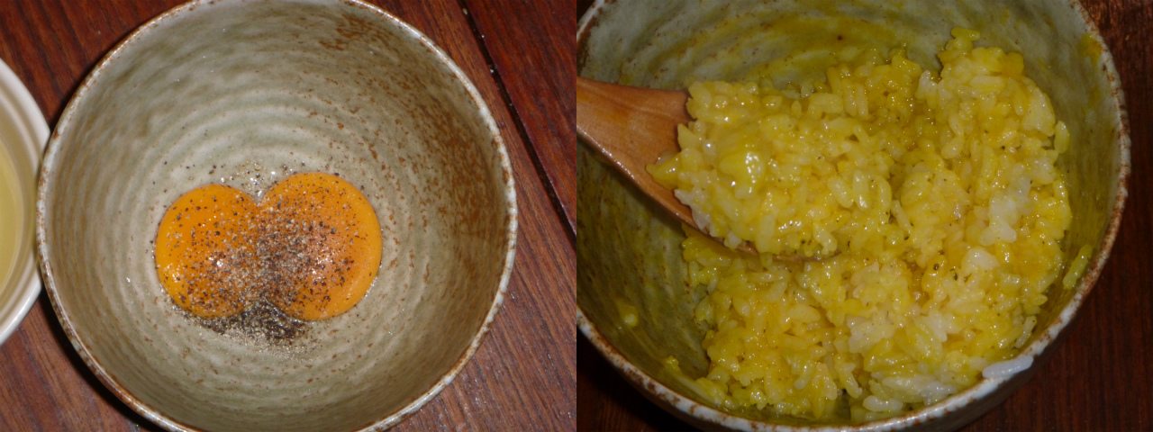 無性にカルボナーラ丼が食べたくなったので、作って食べた。卵黄二個にチーズとブラックペッパーをタップリとかけて、熱々ご飯を乗っけて混ぜ混ぜ。パンチェッタ代わりのチョリソー忘れとったがな。