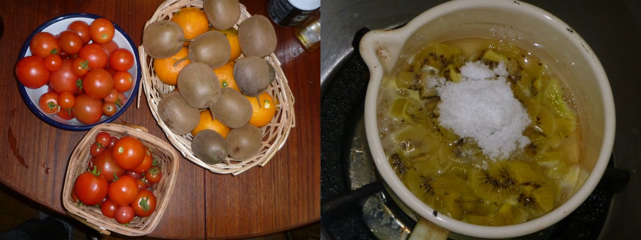 収穫前に落下して、地面に落ちていたキウイを集め、ジャムにする。完熟を通り越して発酵が始まっている物が多数だが、それをジャムにすると異様に美味しかったりする。11月8日(日)