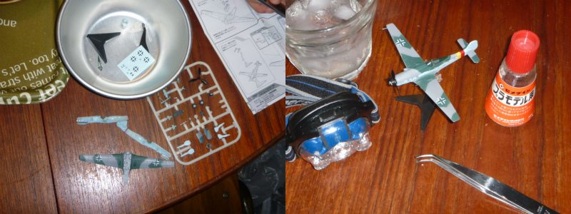 ビッグワンガム的なヤツが150円くらいで叩き売りになっていたので購入。待ちきれない息子はんが夕食時に組め組めと持ってきた。まずは、手の震えを止める為に酒だ。呑みながら開封すると、かつてのブニブニのポリ素材ではなく、高精度で極小のパーツ構成で、ピンセットとヘッドライトを持ち出す始末。かなり手間取った上、マーキングシールを貼ろうとしたら、水転写デカールに心が折れた。