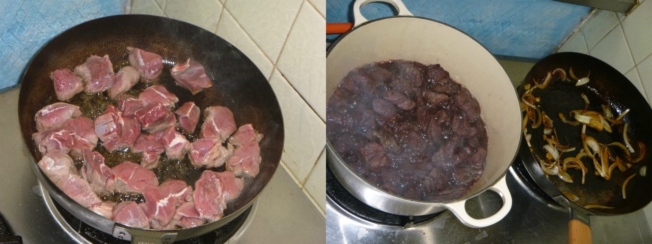 今日はワイフのお誕生会。エビクリームグラタン、スパゲッティミートソースを下して、ビーフシチューのオーダー。ビーフを炒めてワインで煮込む傍ら、ダシのソースを作る。
