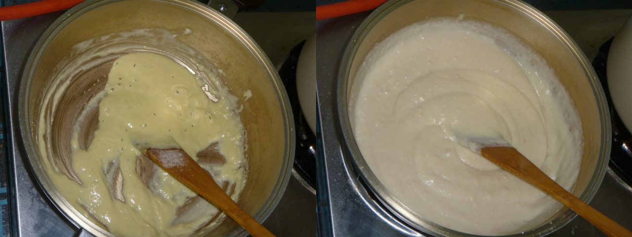 小麦粉をバターで慎重に炒めて、ブラウンソースを作る。