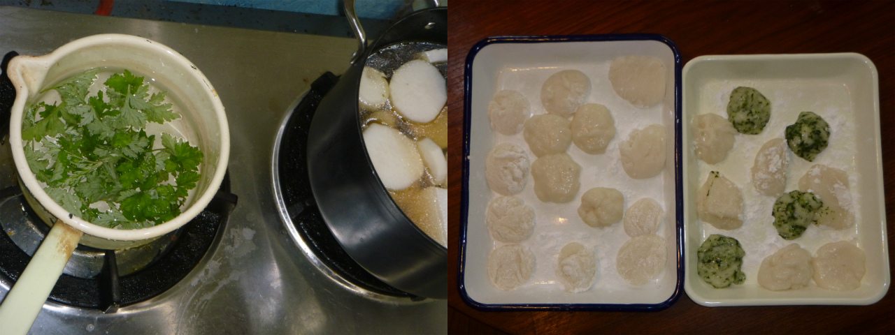 ぜんざいが人気で追加の餅をホームベーカリー作る。ついでにヨモギを採って来て、あく抜きして餅を丸める際に加えてたが、本来はベーカリーに放り込む物らしい。