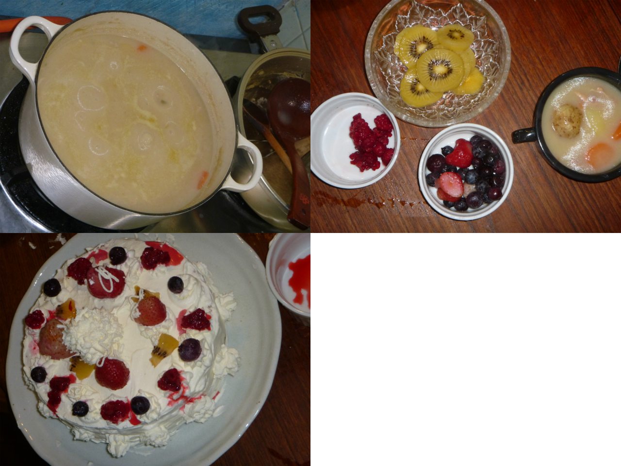 明日はクリスマスメニューだそうで、ケーキまで出るそうだ。ベシャメルソースをこさえ、シチューを仕込む傍ら、冷凍保存していた余剰果実を解凍し、ケーキ作り。ケーキは毎回娘さん担当であるが、このピースオブケークをどうやって崩れないように学校まで持って行くかが問題だ。