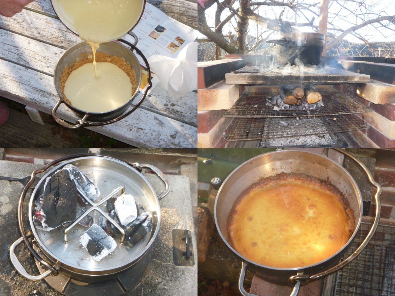 年末野外料理。ダッジオーブンでチーズケーキを焼くことができるかと言う実験。