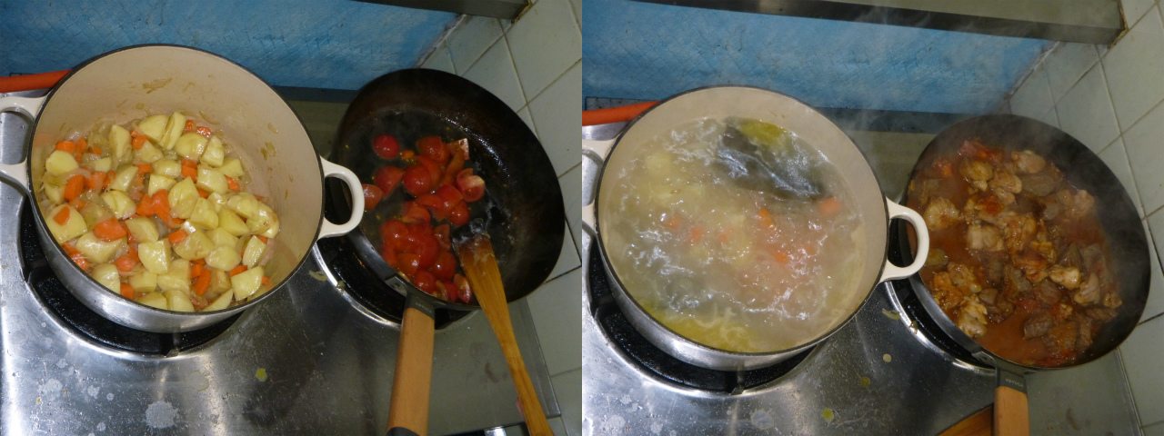 明日の給食はカレーなので、仕込む。今回はトマトが余っていたので、鶏肉をトマトで煮込んだカレーにしてみた。