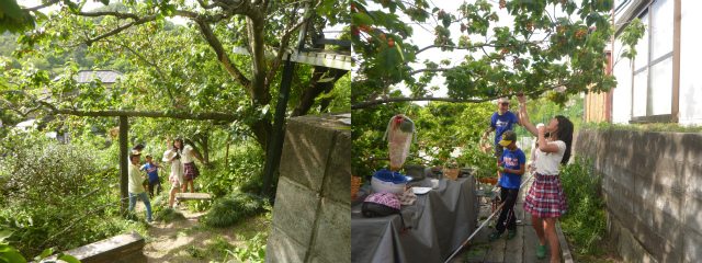 昼から、ヨガ教室のイベントとして、生徒さん3組が小雨の中、チェリー狩りに来てくれた。
