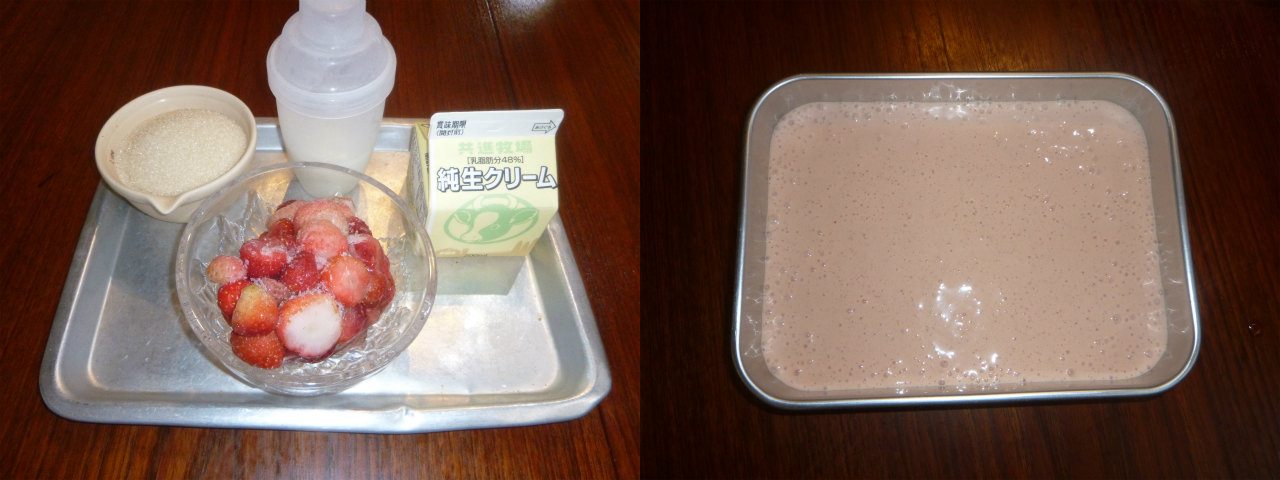 選別で生食用に入れなかった苺達を凍らせて、良く冷やした生クリームと卵黄と共にミキサーブンブンし、ストロベリーアイスクリームを作った。簡単なのにハーゲンダッツよりも旨い。