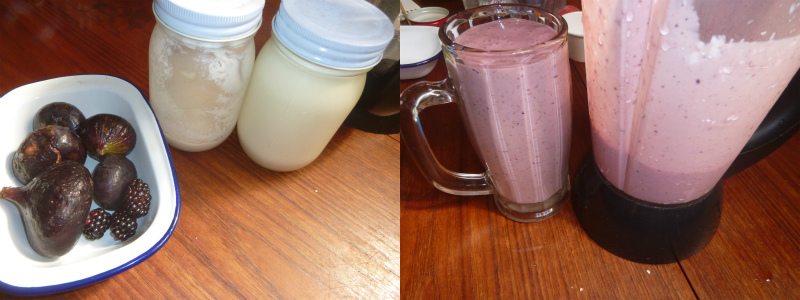 凍らせておいた西洋イチジクと採れ始めたブラックベリーを豆乳ヨーグルトと蜂蜜と共にミキサーでシェイク。昼過ぎにファスティングドリンクを1回だけ飲む(豆乳ヨーグルトの作り方はコチラ)。その他は、「ファスティングプレミアム1本で、4日以上挑戦したい時」で紹介した飲み物を使用。