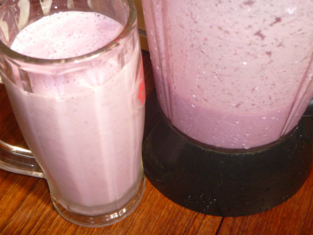 ソーンフリーを一旦冷凍庫で凍らせ、豆乳ヨーグルトと豆乳、蜂蜜と共にミキサーでブンブンするだけである。凍らせたソーンフリーが氷代わりとなる為、氷によって風味が薄まることがなく、濃厚なベリー感を味わうことができる。
