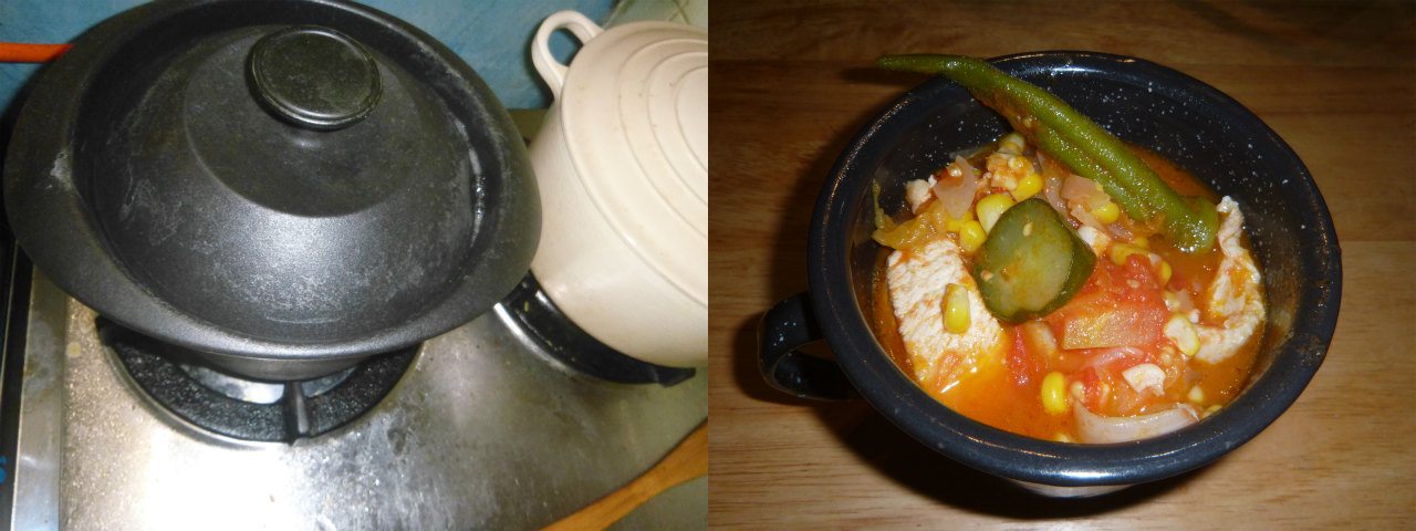 急いでいたので、お釜で飯を炊いた。家庭料理なんだから、野菜を細かく切らずに姿のまんまがいいんだ!が最近の口癖。