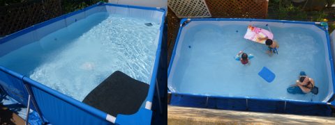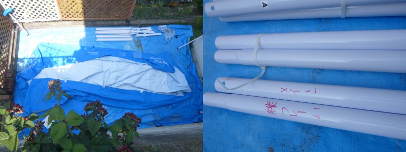 日が照りつける前の午前中に、意を決して、フレームプールを出すことにした。説明書を見なくても大丈夫なように、昨年の私はフレームにメモを残しており、極めて短時間で1から10まで一人で組み立てることができた。