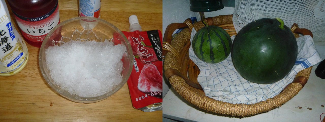 土曜日が記録会だから、カーボローディングってほどではなくても、カーボチャージせねばってことで、かき氷とスイカでカーボアップを図った。翌日はあべかわ餅。