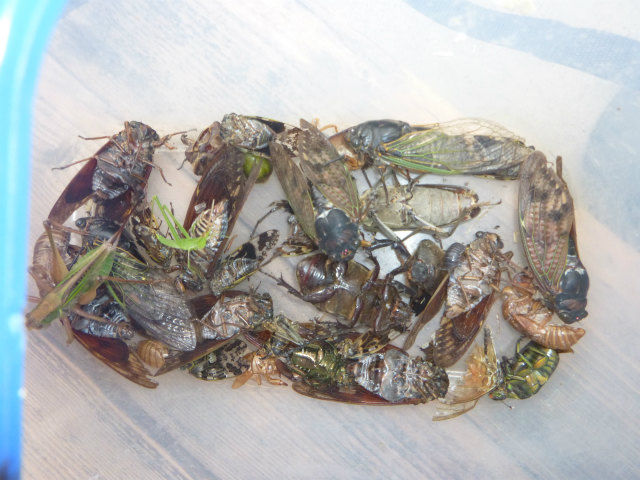街灯の下で弱り切ったミヤマカミキリとカブトの雌も採れ、ボリュームのある鶏の餌となった。