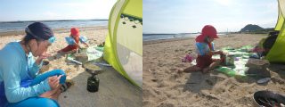 メインディッシュは、シングルバーナーとコッヘルで簡単に調理できるインスタントパスタ!家なら食べないと思うが、野外故か、子供達はバクバク食べた。